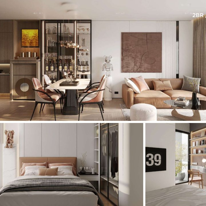 Mỗi căn hộ là sự giao hòa giữa phong cách Đông Dương hiện đại và tinh thần cung đình Huế, được chăm chút trong từng chi tiết thiết kế, lựa chọn vật liệu cao cấp như gỗ, đá tự nhiên, kết hợp bố cục thông minh đón gió và ánh sáng, tạo nên cảm giác vừa sang trọng vừa an yên.