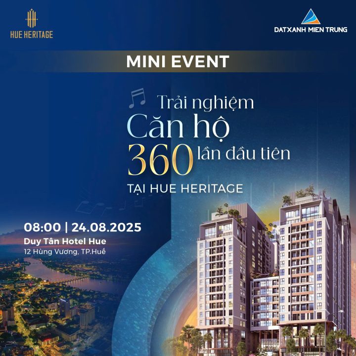 Cùng Đất Xanh Miền Trung chiêm ngưỡng căn hộ 360, trải nghiệm không gian sống chuẩn 5 sao quốc tế, khám phá cơ hội an cư đầu tư sinh lời bền vững tại sự kiện mini event ngày 24/08/2025